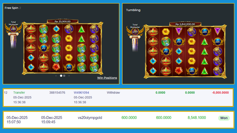 Yang membuat kemenangan ini spektakuler adalah akumulasi pengganda yang mencapai level sangat tinggi. Dalam 15 putaran Buy Spin, simbol premium muncul berturut-turut sehingga total kemenangan melonjak drastis hingga mencapai Rp 5.000.000,-.