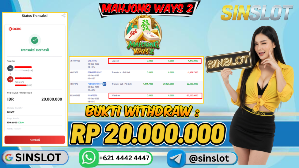 Kabar kemenangan besar kembali menggema dari dunia Slot online, ketika seorang member SINSLOT berhasil meraih payout spektakuler sebesar Rp 20.000.000,- pada 08 Desember 2025. Tidak hanya menang besar, tetapi kemenangan ini langsung LUNAS 100% tanpa potongan dan cair hanya dalam hitungan menit.