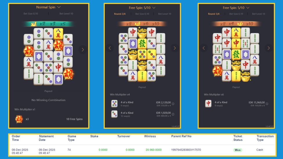 Yang membuat kemenangan ini spektakuler adalah akumulasi pengganda yang mencapai level sangat tinggi. Dalam 10 putaran Buy Spin, simbol premium muncul berturut-turut sehingga total kemenangan melonjak drastis hingga mencapai Rp 20.000.000,-.
